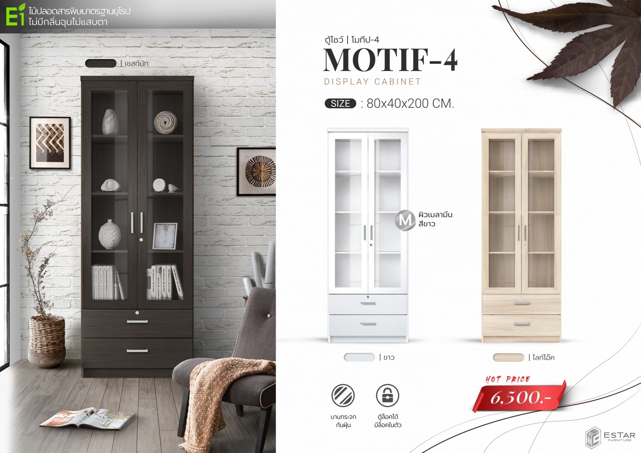 ตู้โชว์ ขนาด ก800xล400xส2000มม. บานกระจกกันฝุ่น ตู้สามารถล็อคได้มีล็อคในตัว เอสต้าร์ ตู้โชว์