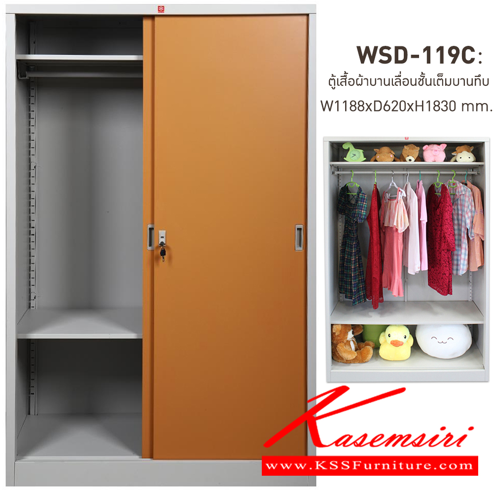 ตู้เสื้อผ้าบานทึบ LUCKY WORLD WSD-119Cตอบโจทย์ทุกฟังก์ชั่นการใช้งานด้วย ตู้เสื้อผ้า 2 บานเลื่อนทึบ วัสดุผลิตจากเหล็กหนา 0.6 มิลลิเมตร แข็งแรงทนทานต่อการใช้งานและการกัดกร่อนได้ดี ผิวเหล็กเคลือบด้วย เคมี Dry Inplace Organic Coating เพื่อป้องกันสนิมและเพิ่มการยึดเกาะของสี มือจับผลิตจากพลาสติกฉีดขึ้นรูป แข็งแรงทนทาน ใช้งานง่าย มีราวแขวนเสื้อผ้า 1 ราวมีชั้นวาง สำหรับวางเสื้อหรือผ้าขนหนู ของอเนกประสงค์ ช่วยให้ตู้ของคุณเป็นระเบียบมากยิ่งขึ้น คุณสมบัติ