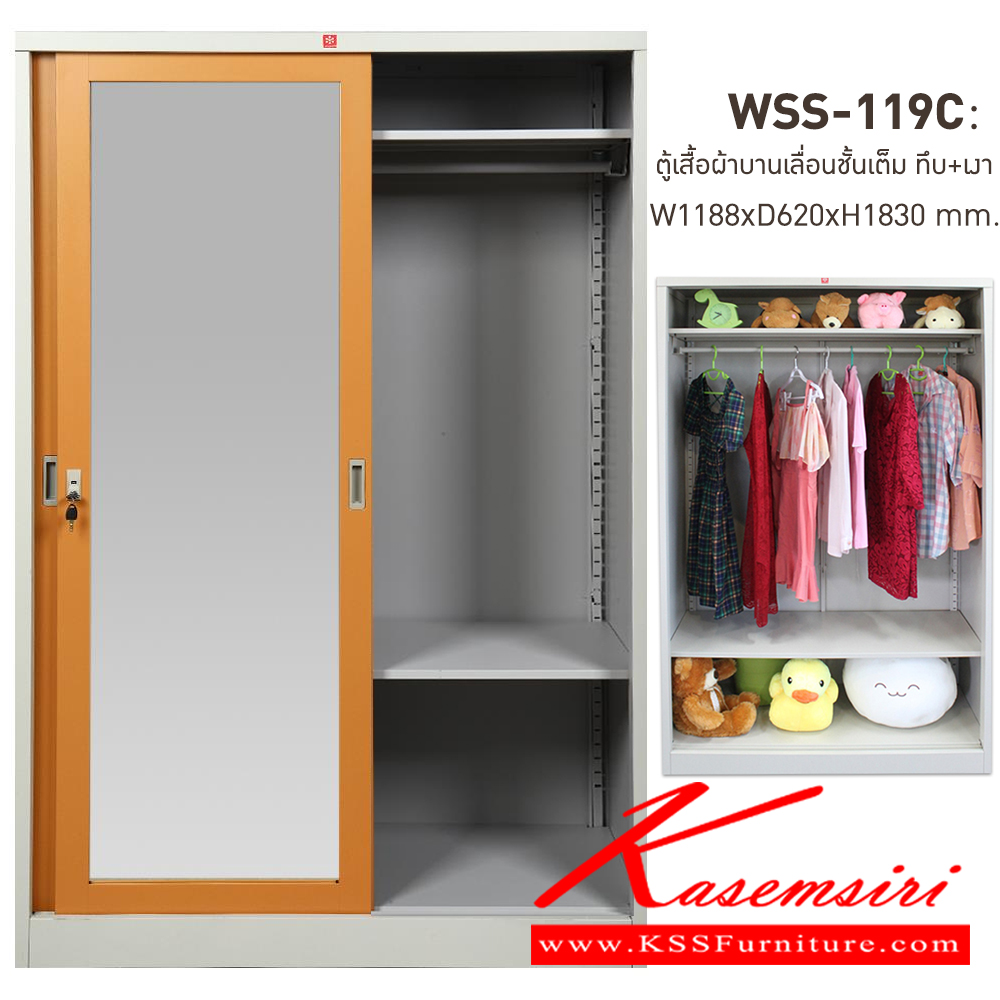 ตู้เสื้อผ้าเหล็ก 2 บานเลื่อนทึบซ้าย - กระจกเงาขวา มีกุญแจล็อกตู้