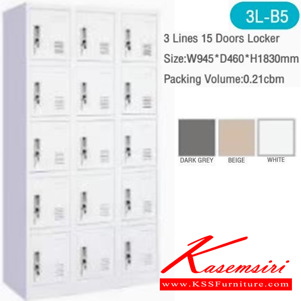 ตู้ล็อกเกอร์15ประตู ขนาด ก945xล460xส1830 มม.สีเทาเข้ม,สีขาว,สีครีม บีที ตู้ล็อกเกอร์เหล็ก