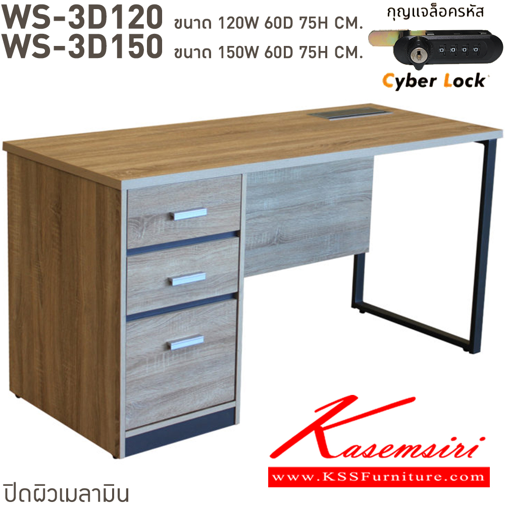 โต๊ะทำงาน 3 ลิ้นชัก WS-3D (150cm) ลิ้นชักแบบ central lock กุญแจเป็นแบบล๊อคด้วยรหัส 4 ตัว มีกุญแจสำรองเมื่อลืมรหัส ท๊อปเป็นเมลามิน แข็งแรงและทนทานต่อการใช้งาน บีที โต๊ะสำนักงานเมลามิน บีที โต๊ะสำนักงานเมลามิน