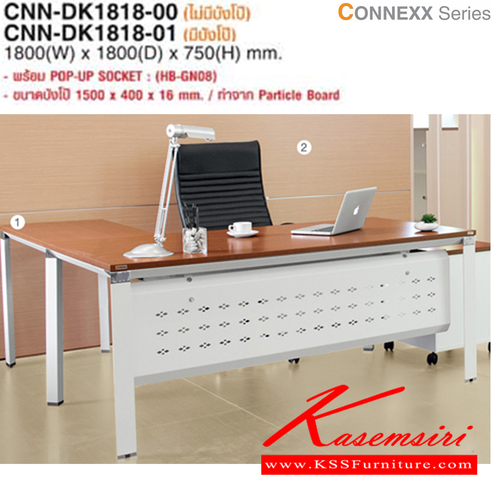 โต๊ะสำนักงาน CNN-DK1818 ขนาด ก1800xล1800xส750มม. (ไม่มีบังโป๊,มีบังโป๊) มี 3 สีให้เลือก (GKS,MJS,EJS) ไทโย โต๊ะทำงานขาเหล็ก ท็อปไม้