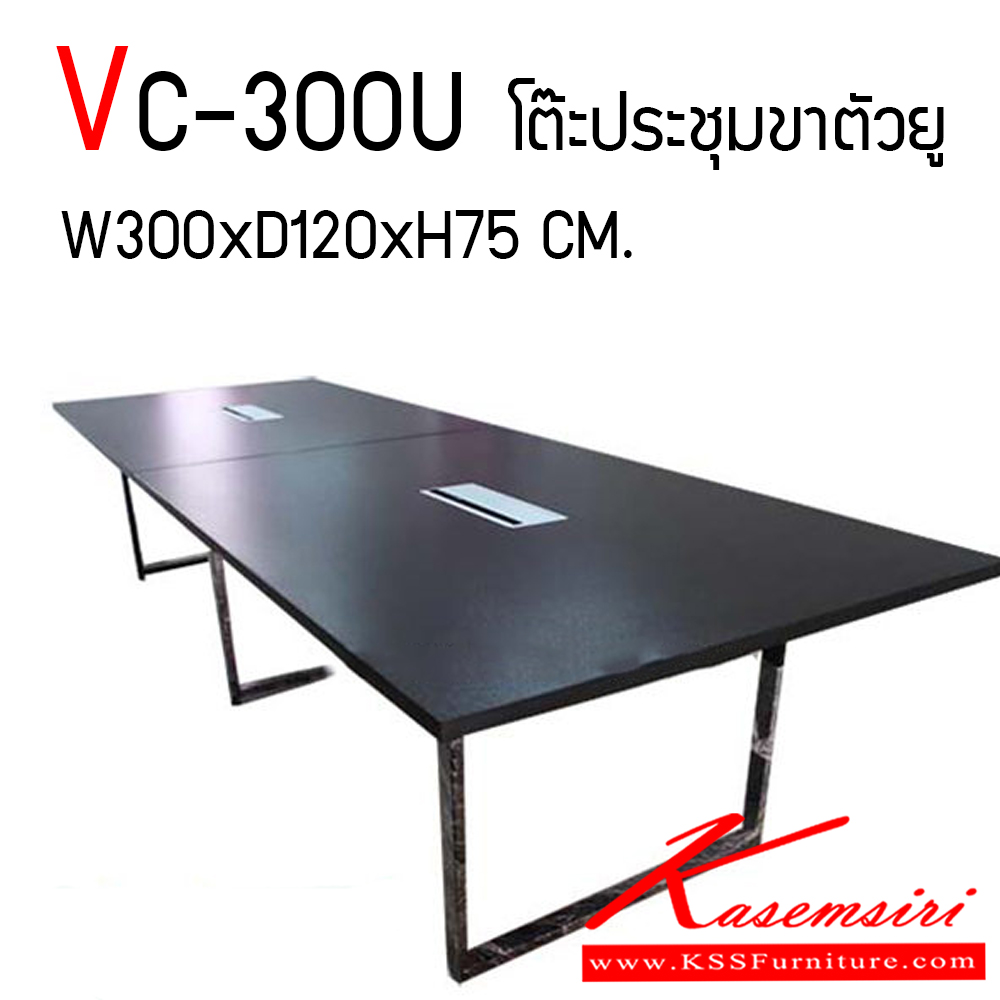 โต๊ะประชุมขาเหล็กตัวยู (สามารถเลือกสีท๊อปได้) ท็อปทำด้วยไม้ปาร์ติเกิ้ลเคลือบเมลามีนหนา 25 มม. ขาเหล็กทำด้วยเหล็กกล่มขนาด 2*1 นิ้ว พ่นสี วีซี โต๊ะประชุม
