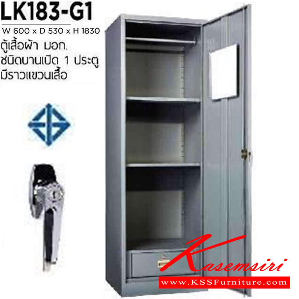ตู้เสื้อผ้า มอก. บานเดียวบานเปิด พร้อมราวแขวนเสื้อ ขนาด ก600Xล530Xส1830 มม. เวลโคร ตู้เสื้อผ้าเหล็ก