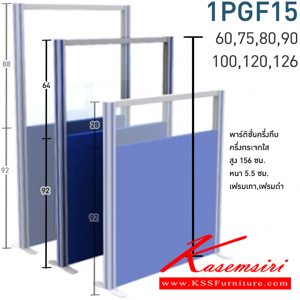 พาร์ติชั่นแบบครึ่งทึบครึ่งกระจกใส 1 แผ่น พร้อมเสา 1 ข้าง (ความสูง 156 cm. ส่วนทึบ 92 cm รวมปุ่มปรับ กระจก สูง 64 รวมคานบน) ไม่รวมอุปกณ์เสริม เสาจบ,ขาตั้ง สามารถเลือกสีเฟรมได้ เฟรมสีเทา,เฟรมสีดำ ขนาด กว้าง 60,75,80,90,100,120,126 ซม. โมโน พาร์ทิชั่น