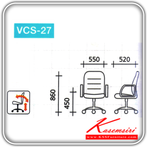 เก้าอี้สํานักงานขาพลาสติก ขนาด 550x450x860มม. หุ้มพีวีซี (ผ้าฝ้าย) ปรับระดับด้วยแกนเกลียว เก้าอี้สำนักงาน VC