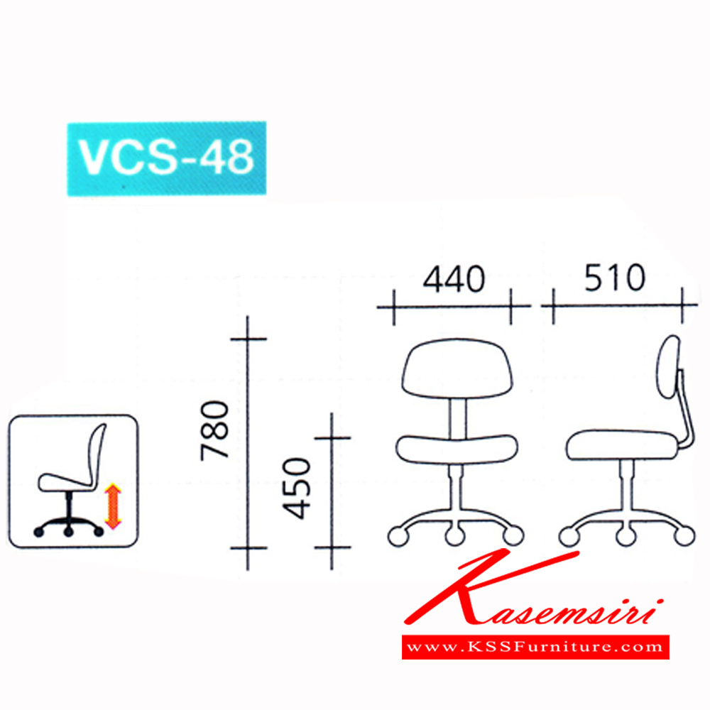 เก้าอี้สํานักงานขาพลาสติก (หุ้มพีวีซี-ผ้าฝ้าย) ขนาด540x510x780มม. ปรับระดับด้วยไฮดรอลิค เก้าอี้สำนักงาน VC