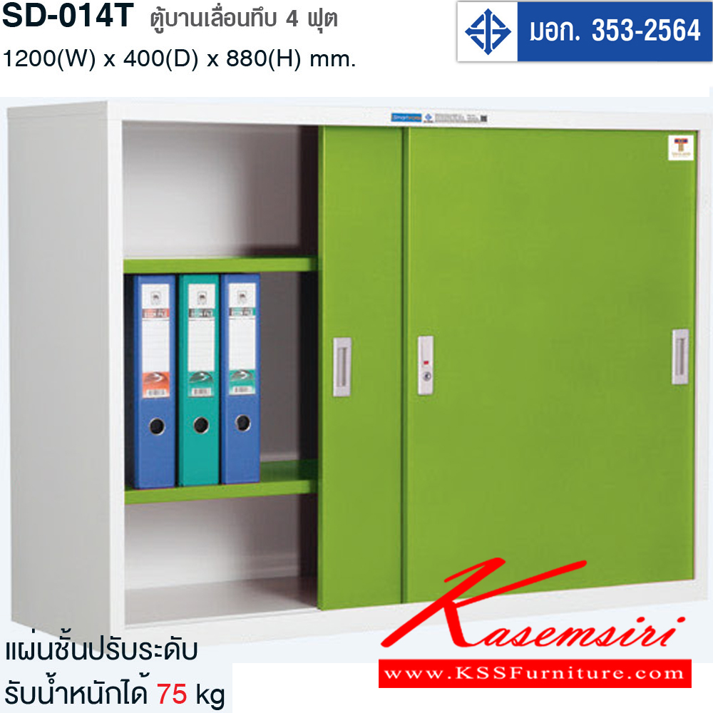ตู้บานเลื่อนทึบ รุ่น SD-014T มอก.353-2564 ขนาด ก1200xล400xส880มม. แผ่นชั้นปรับระดับรับน้ำหนักได้ 75 kg. มี5สี(เทาสลับ,ขาว/น้ำเงิน,ขาว/เขียว,ขาว/ส้ม,ขาว/แดง) สมาร์ท ฟอร์ม ตู้เอกสารเหล็ก