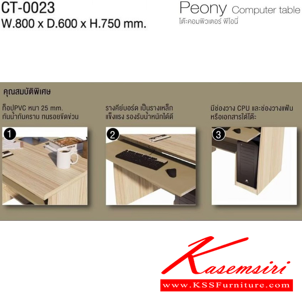 Peony Computer table โต๊ะคอมพิวเตอร์ พีโอนี่ CT-0023 ขนาด ก800xล600xส750มม. (มอคค่า/กราไฟท์,ไวท์เมเปิ้ล/แซน) ท็อป PVC 25 มม. อิมเมจ โต๊ะสำนักงานPVC