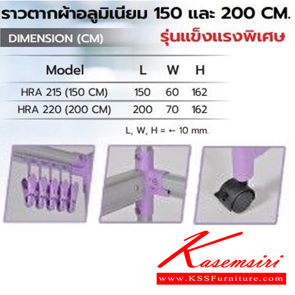 ราวตากผ้าอลูมิเนียมรุ่นแข็งแรงพิเศษ HRA-215(150ซม.) และ HRA-220(200ซม.) สีม่วง ซันกิ ราวอลูมิเนียม