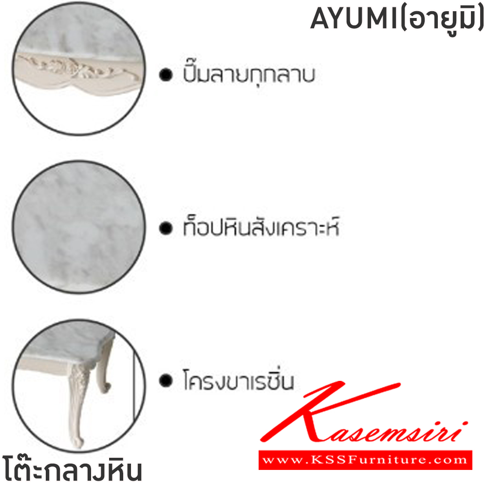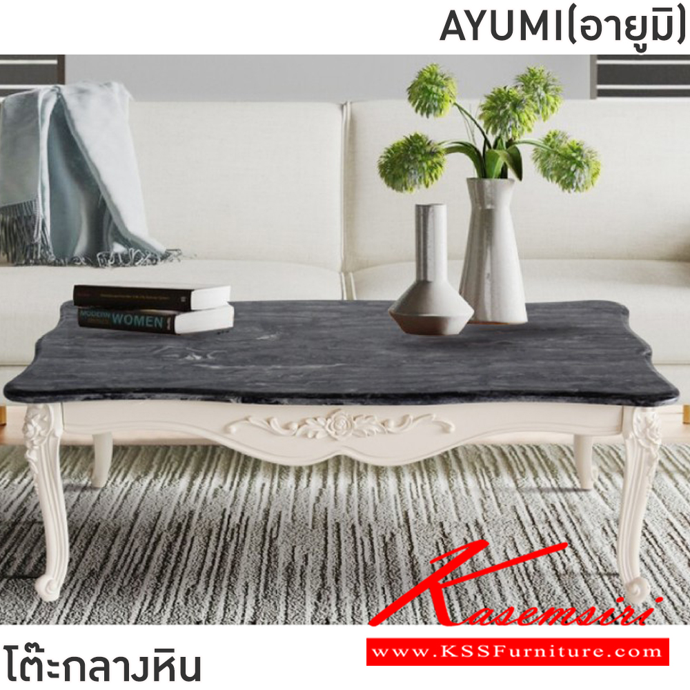 โต๊ะกลางหินขาไม้โซฟา AYUMI(อายูมิ) ขนาด ก1200xล700xส400 มม.โครงขาเรซิ่นปั้มลายกุหลาบ ท็อปหินสังเคราะห์ ฟินิกซ์ โต๊ะกลางโซฟา