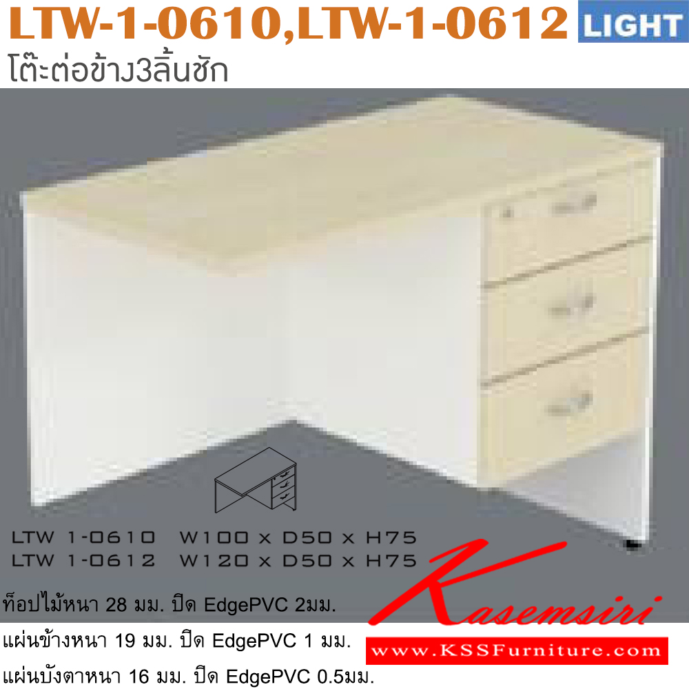 โต๊ะต่อข้าง รุ่น LIGHT โต๊ะ 3 ลิ้นชักข้างขวา เลือกสีลายไม้ได้ ประกอบด้วย LTW-1-0610 ขนาด ก1000xล500xส750 มม. LTW-1-0612 ขนาด ก1200xล500xส750 มม. อิโตกิ โต๊ะสำนักงานเมลามิน