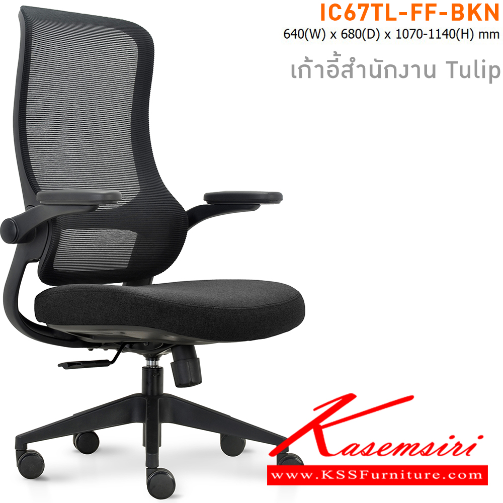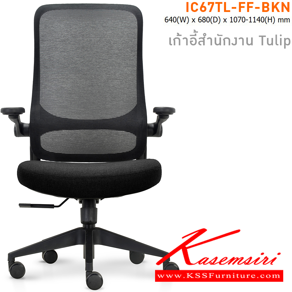 เก้าอี้สำนักงาน TULIP เบาะหุ้มผ้าสีดำ โครงเก้าอี้สีดำ และ พนักพิงหุ้มผ้า Mesh สีดำ ขนาด ก640xล680xส1070-11140 มม. ไทโย เก้าอี้สำนักงาน (พนักพิงสูง)
