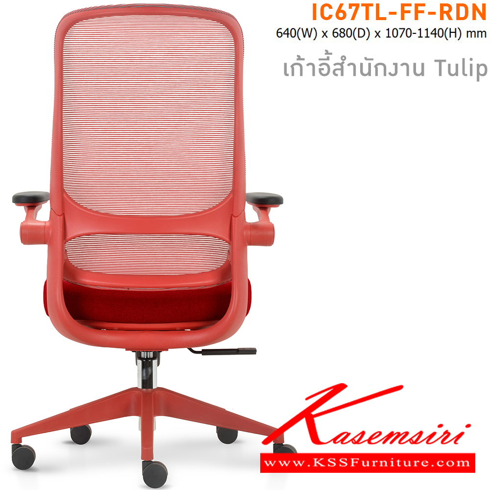 เก้าอี้สำนักงาน TULIP เบาะหุ้มผ้าสีแดง โครงเก้าอี้สีแดง และ พนักพิงหุ้มผ้า Mesh สีแดง ขนาด ก640xล680xส1070-11140 มม. ไทโย เก้าอี้สำนักงาน (พนักพิงสูง)