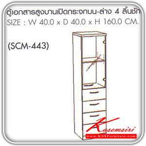 ตู้เอกสารสูงบานเปิดกระจกบน/ล่าง 4 ลิ้นชัก รุ่น SCM-443 ขนาด ก400xล400xส1600 มม. สีเชอร์รี่ดำ ตู้เอกสาร-สำนักงาน SURE ชัวร์ ตู้เอกสาร-สำนักงาน