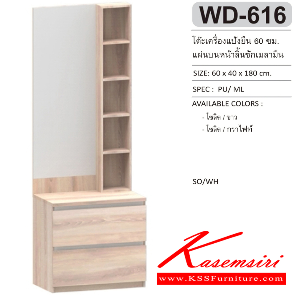 โต๊ะเครื่องแป้งยืน 60 ซม. แผ่นบนหน้าลิ้นชักเมลามีน ขนาด 60x40x180 ซม.SPEC:MELAMINE สีโซลิดขาว(SoWh),สีโซลิดกราไฟท์(SoGp) เอ็กซ์ซีเอฟ โต๊ะแป้ง