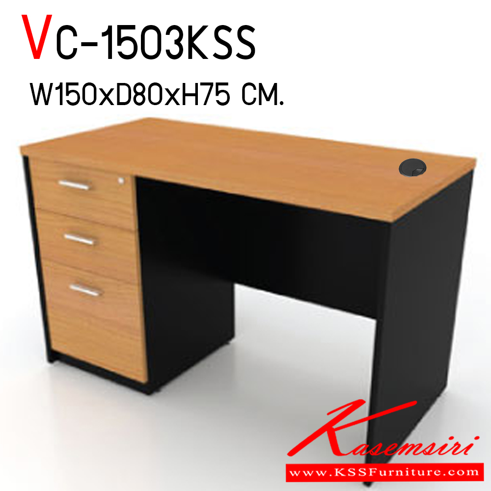 โต๊ะทำงาน 3 ลิ้นชักขวา ขนาด ก1500xล800xส750 มม. TOP เมลามิน 25 มม. ขา 19 มม. ลิ้นชักกว้า 42 ซม. สามารถเลือกสีท็อปได้ วีซี โต๊ะสำนักงานเมลามิน
