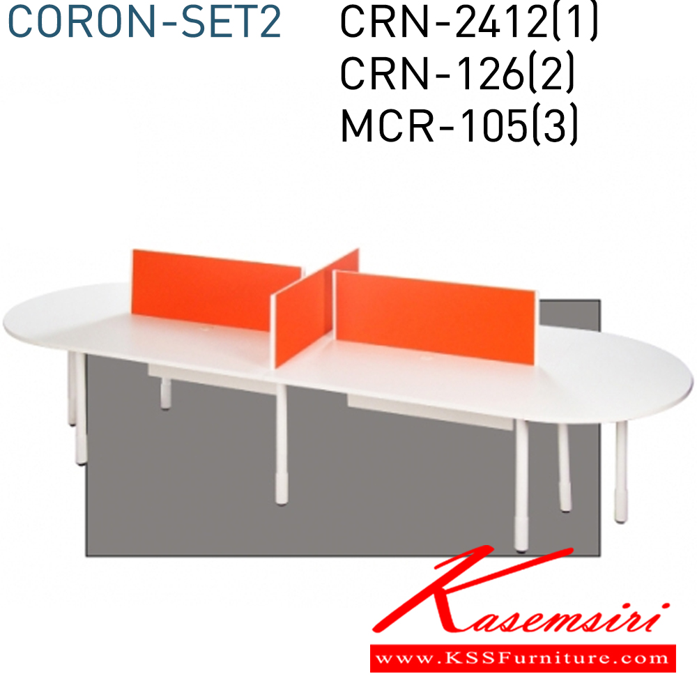 ชุดโต๊ะทำงาน CORON SET2 ประกอบด้วย โต๊ะทำงานCRN-2412(1), มินีสกรีนMCR-105(3), โต๊ะเข้ามุมCRN-126(2) TOPเมลามีนสีขาว ขาพ่นขาว มินิสกรีนหุ้มผ้าCAT เสาพ่นสีขาว ฝาครอบรูร้อยสายไฟPP.สีขาว โต๊ะสำนักงานเมลามิน MONO