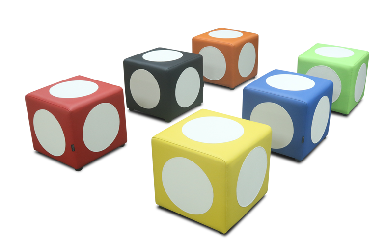 เก้าอี้สตูล รูปทรงลูกเต๋า ผ้าฝ้าย,หนังเทียม มีสีเหลือง,ส้ม,ดำ,น้ำเงิน,แดง ขนาด ก430xล430xส430 มม. เก้าอี้สตูล ITOKI