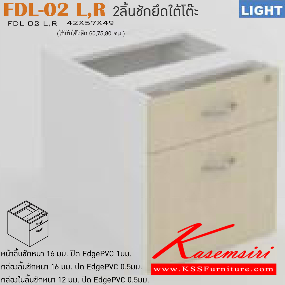 ตู้เอกสารต่อโต๊ะ รุ่น LIGHT 2 ลิ้นชัก เลือกสีลายไม้ได้ ใช้กับโต๊ะลึก600,750,800 มม. ขนาด ก420xล570xส490 มม. ตู้เอกสาร-สำนักงาน ITOKI